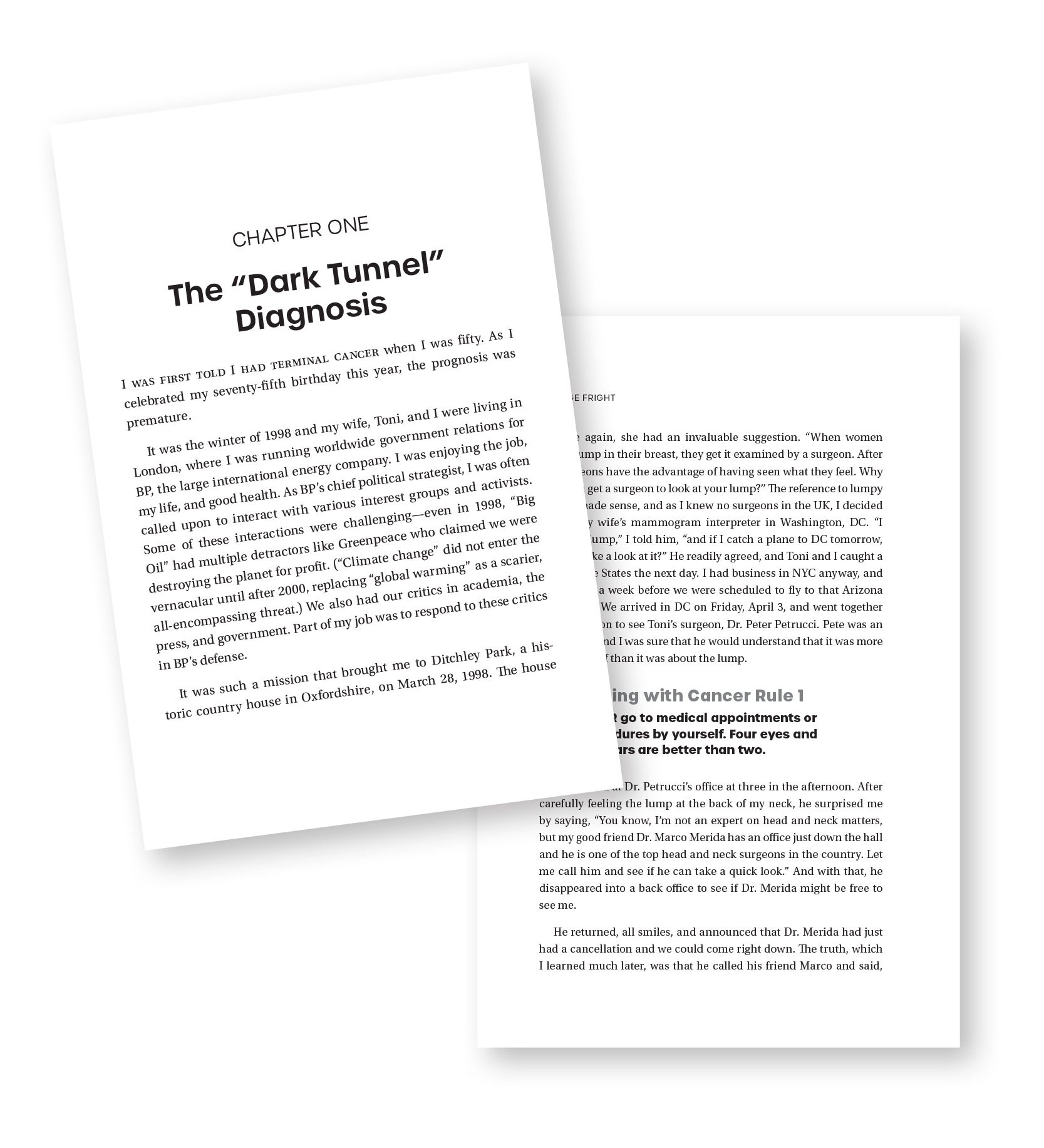 the author, after living a rather charmed life, must have felt as if life were aiming at him, repeatedly hitting him with a sledge hammer. Instead of despair he chose to to look reality in the face and attack his diagnosis in a logical manner without procrastination. He was backed up by his wife, modern medicine, and some pretty amazing health specialists. Mr. Gore is very frank about the awful fear and reality of serious cancer, but he manages to face it without saying “poor me.” Instead, he offers succinct, realistic advice based on his experiences that will undoubtedly benefit anyone who reads this book. There are laughs and tears along the way. The book is relevant to any medical condition and behooves